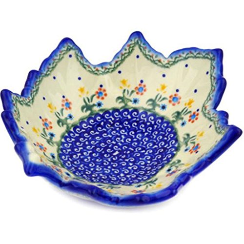 Ceramika Bona H3597E Polish Pottery Ceramic Leaf Shaped Bowl Hand Painted, 9-Inch.