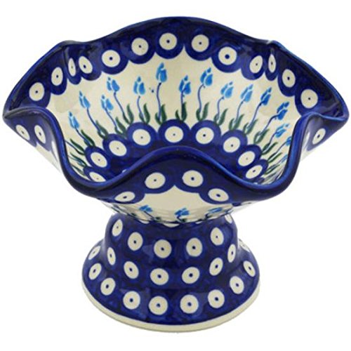 Ceramika Bona H0672H Polish Pottery Ceramic Bowl with Pedestal Hand Painted, 7-Inch.