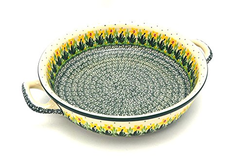 Product Highlight Polish Pottery Baker - Round with Handles - Large - Daffodil